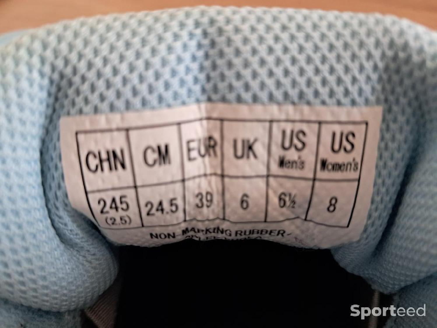 Chaussures baskets de salle. Marque Yonex. Modèle PowerCushion Eclipsion X. Couleur Light Blue. Taille 39. État neuf (portées 2 fois 1 heure), boîte d origine. Taille petit (raison de ma vente). Je fais un 38 2/3 avec un pied large. Ira parfaitement à un 38 ou 38 1/3.