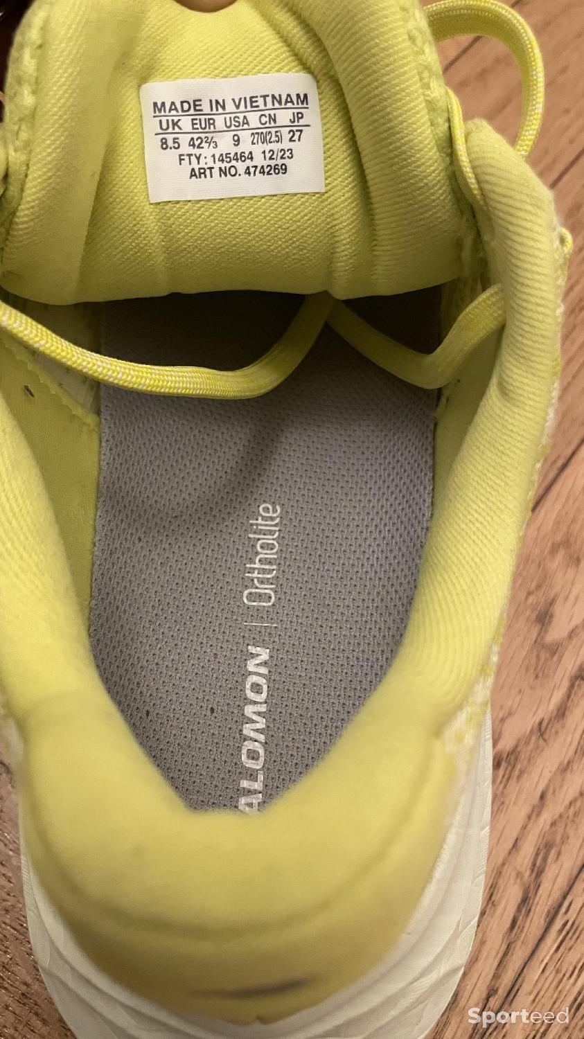 Chaussures de running Salomon Aero Glide 2, modèle 2024. Taille 42, drop 10 mm, amorti excellent, idéales pour sorties longues et allure tranquille. Portées environ 3 fois (moins de 20 km). Je les vends car ne convient pas parfaitement à mon pied. Je les trouve finalement un peu grand pour moi. État proche du neuf (voir photos). Remise en main propre possible à Paris / envoi possible.
