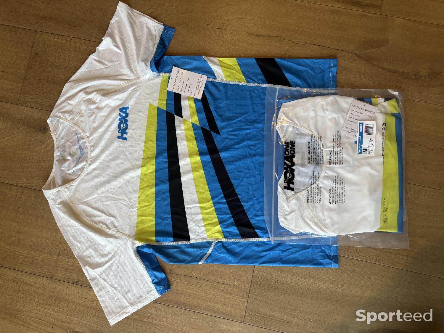 Tee-shirt neuf encore étiqueté, manches courtes, taille M, marque Hoka.