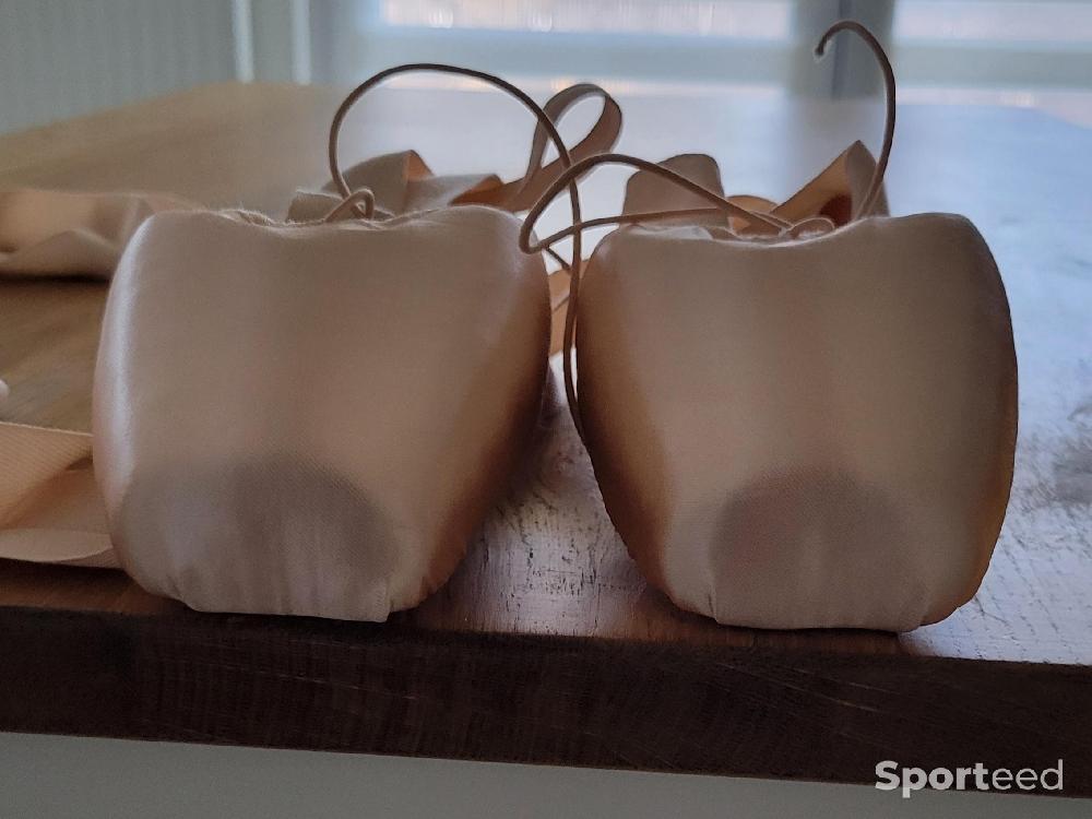 Pointes roses jamais portées. Rubans et élastiques déjà cousus.