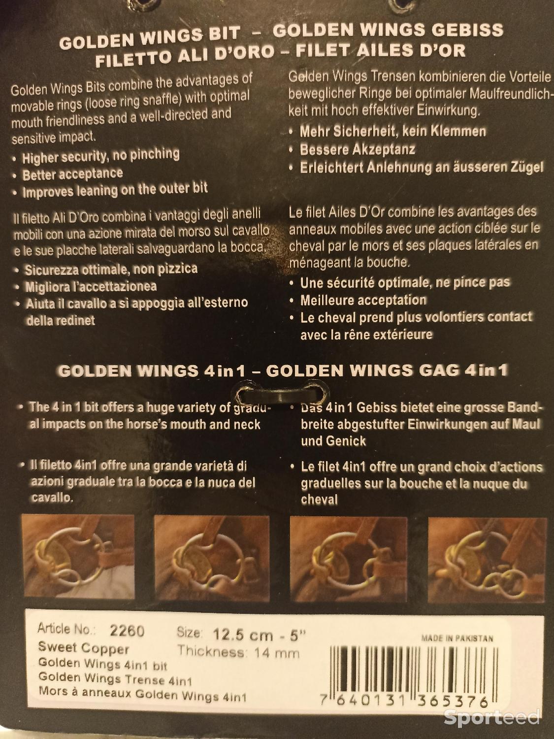 Neuf, mors taille 125mm, double brisure, golden wings, valeur neuf 119€