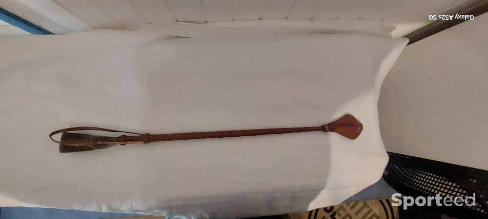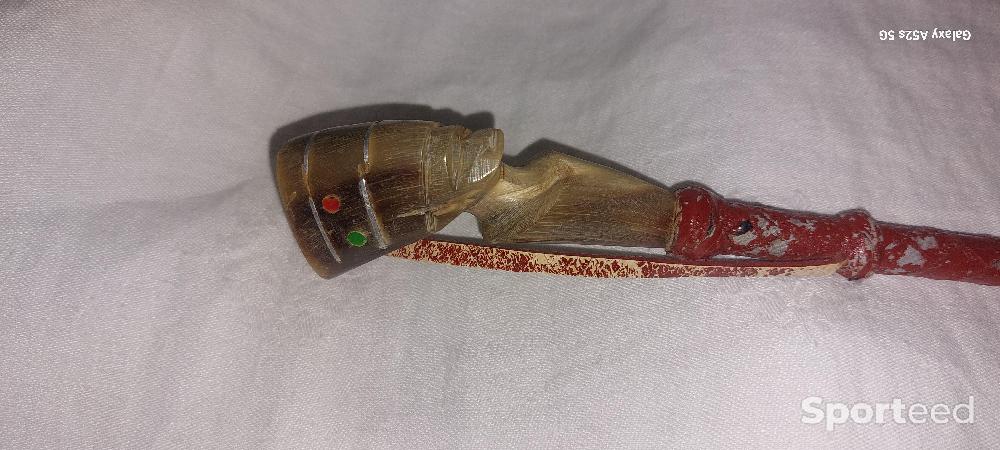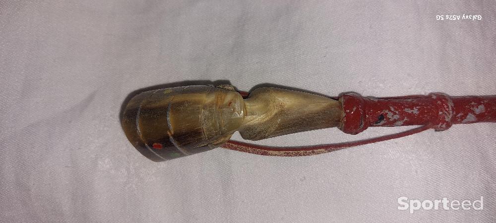 Cuir stressé. Poignée sculptée, cuir et corne.