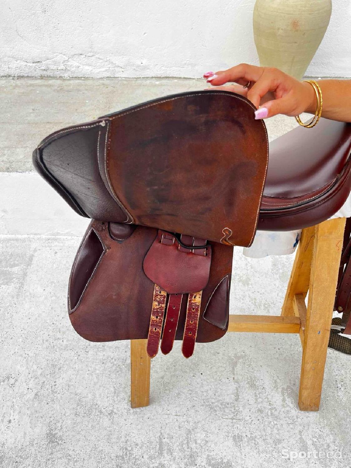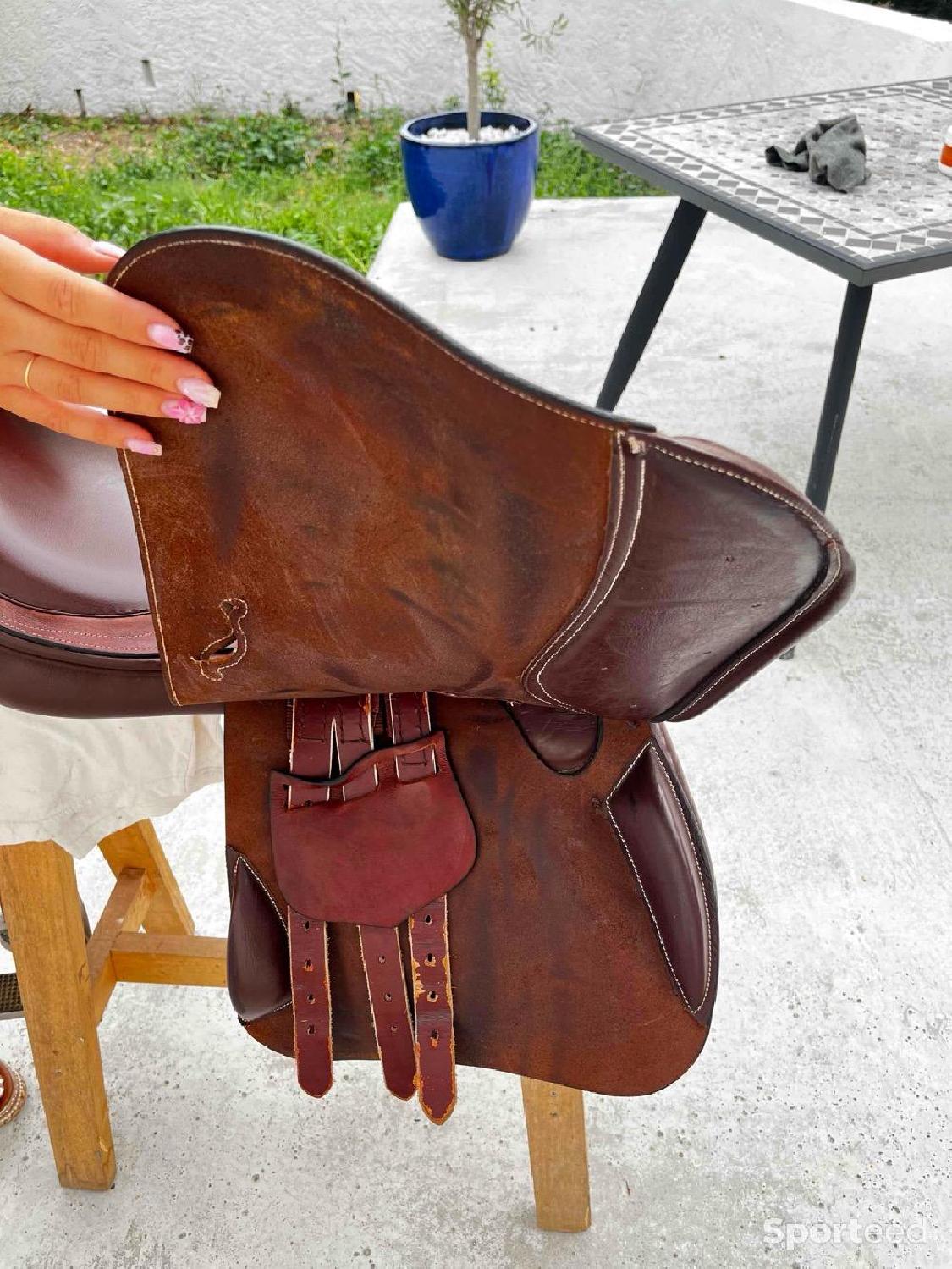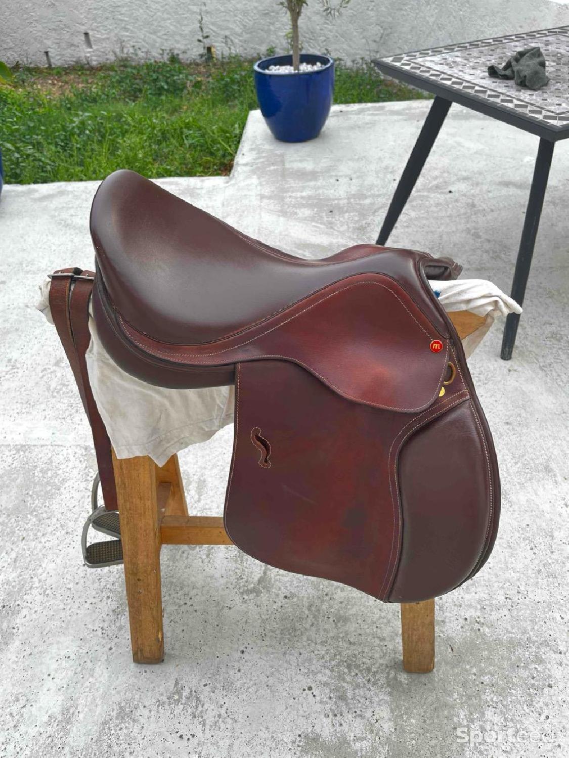 Vends selle Eric Mondange Marron taille 17,5 car ne convient plus à mon cheval. Vendu avec étrier et étrivière ainsi que ça housse