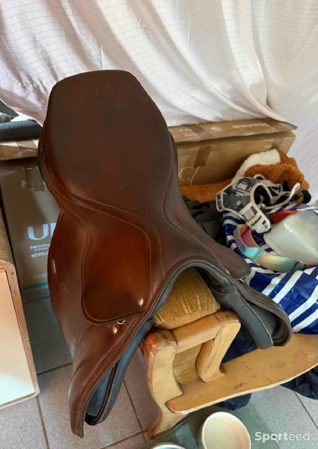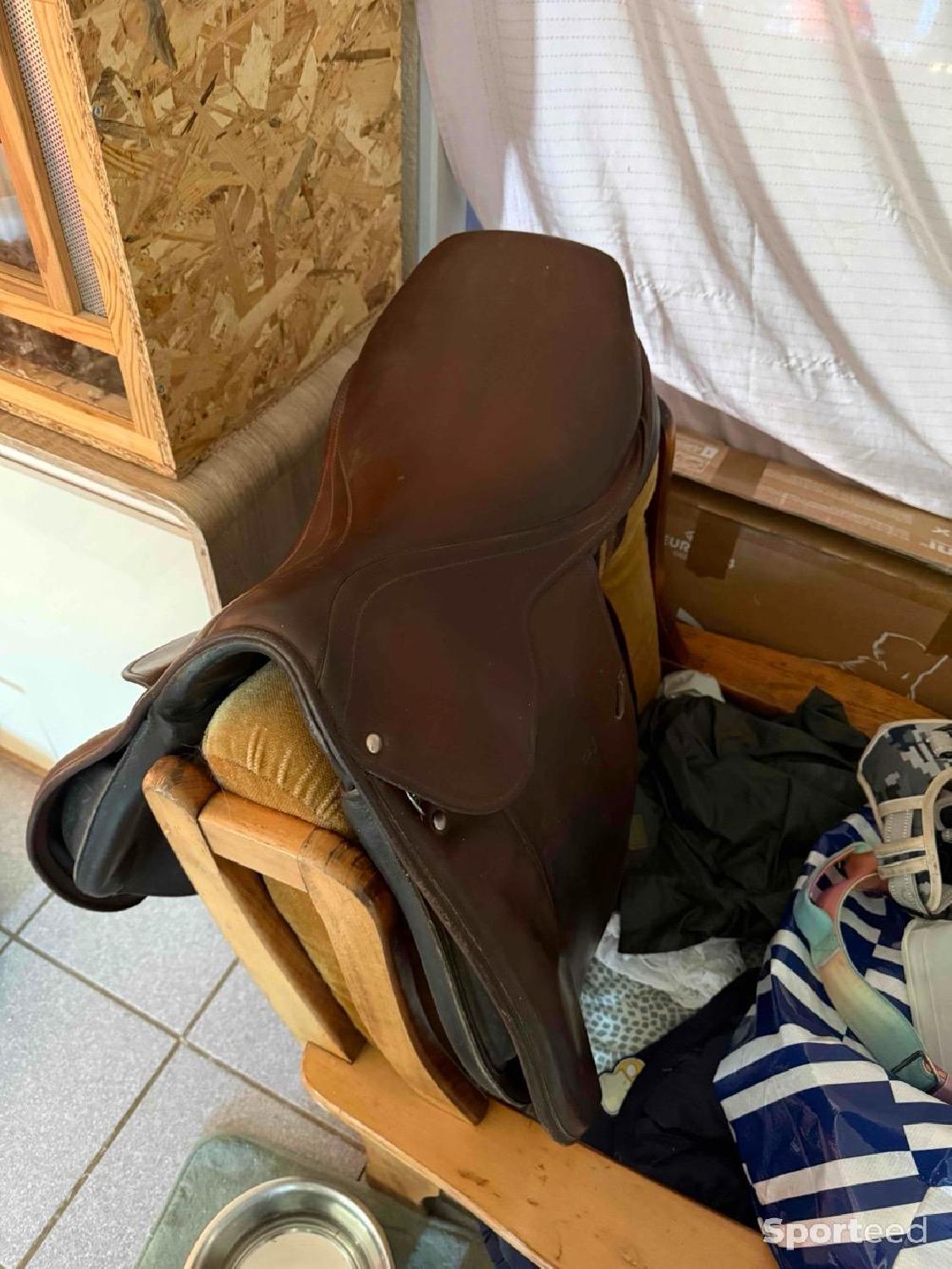 Selle super confortable ! Vendue avec étrivières et étriers ! elle a quelques traces d’usures, et au niveau du passage des étrivières mais ne gêne en rien l’utilisation