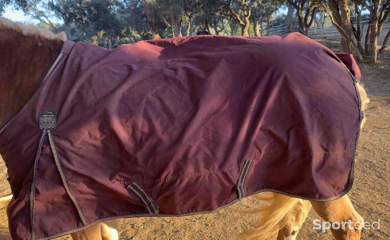Couverture 135cm thermomaster en bordeaux sangle au ventre attaché devant et et sangle à la queue