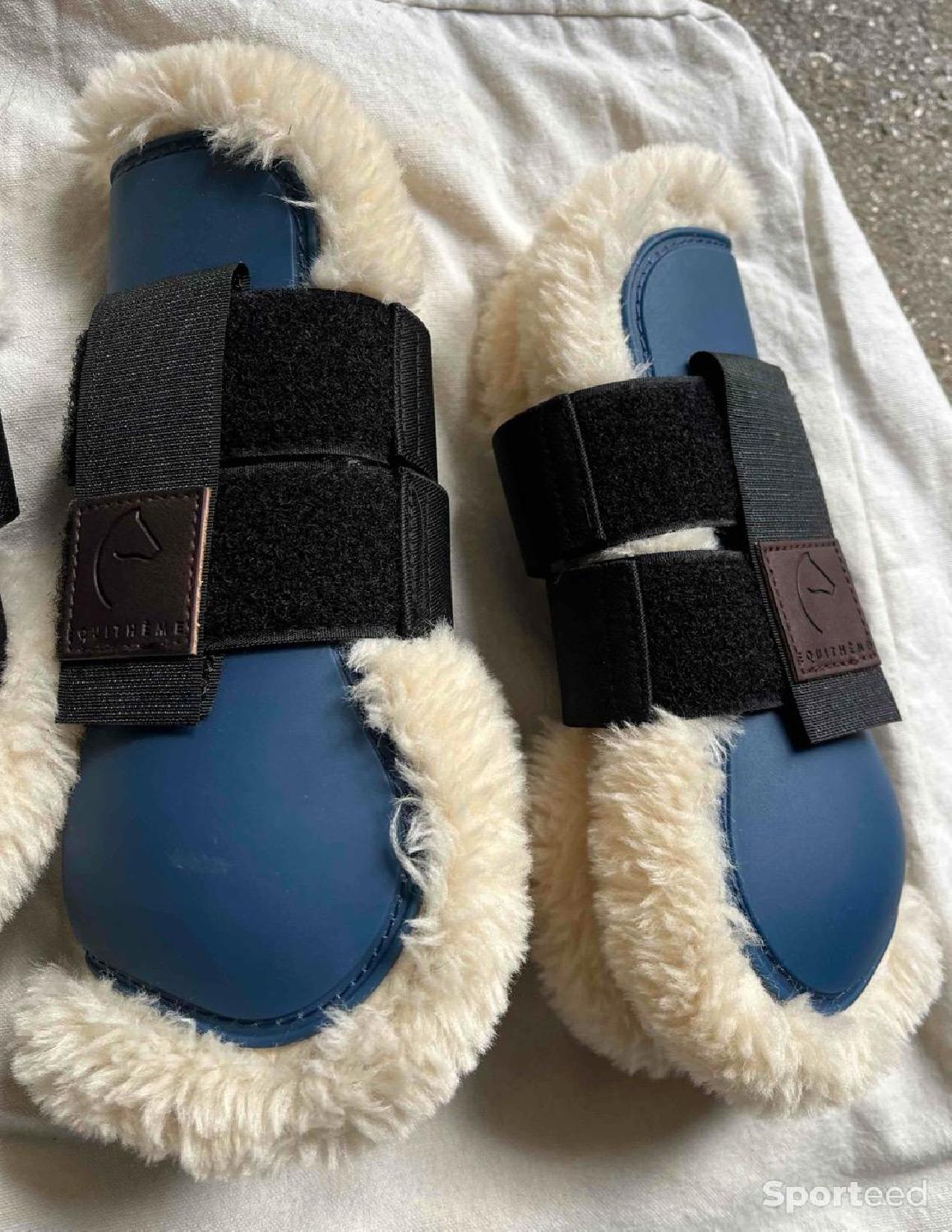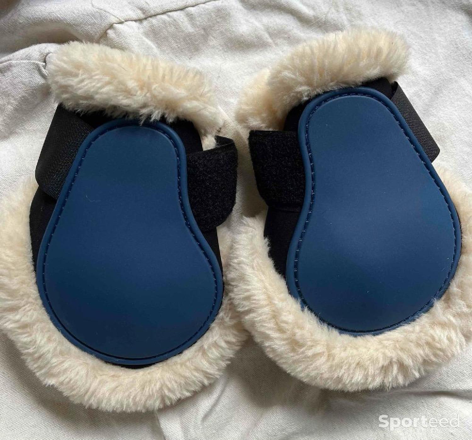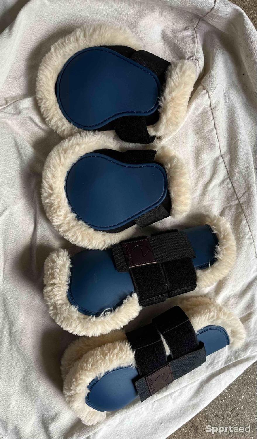 Guêtres et protèges-boulets bleus -Equitheme - Taille poney - Neufs jamais servis. Vente suite à erreur de taille