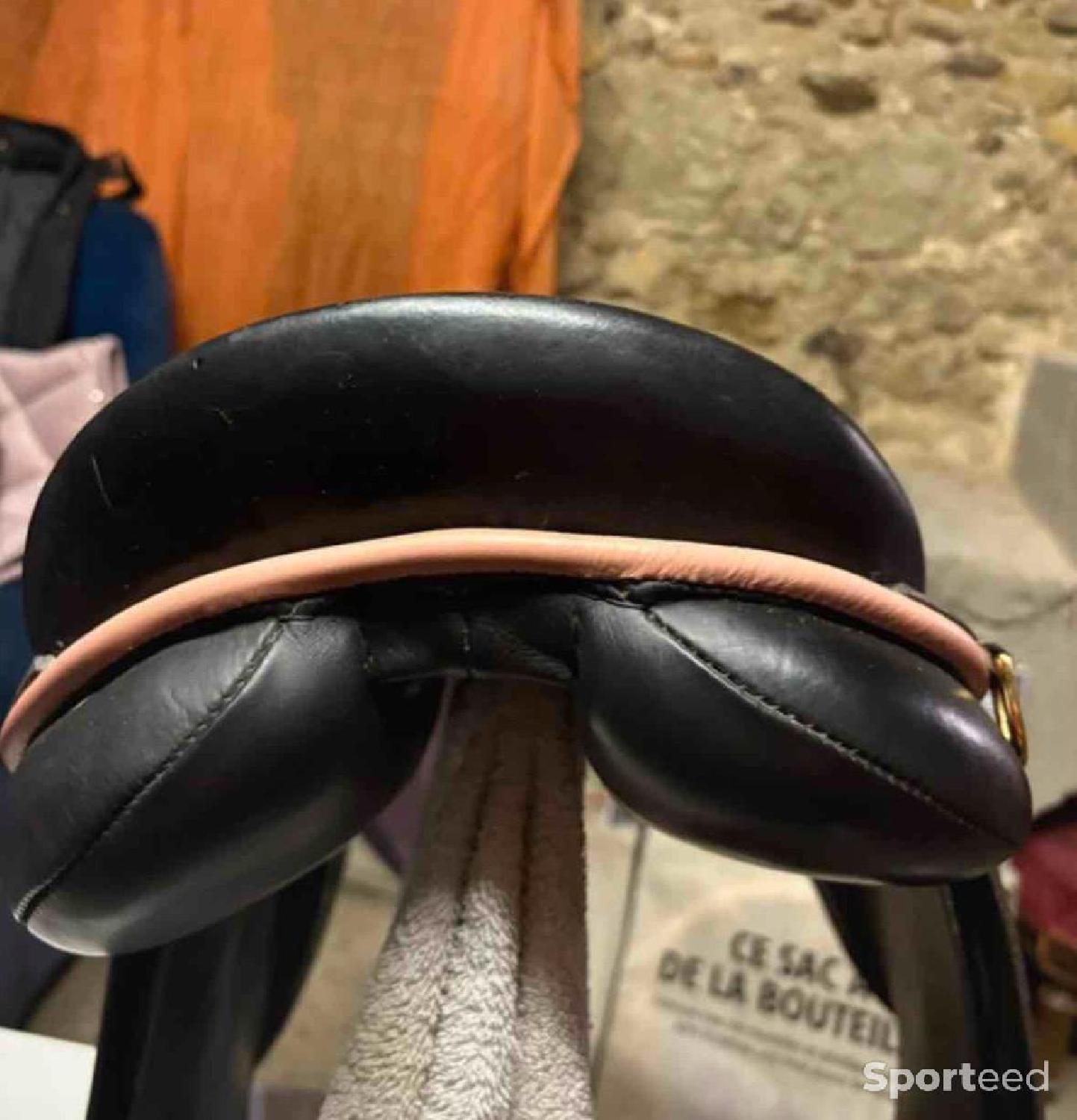 C’est une ancienne génération de la marque belge JMR : cuir solide, siège confortable et bonne position à cheval, idéale pour le plat comme pour le CSO.