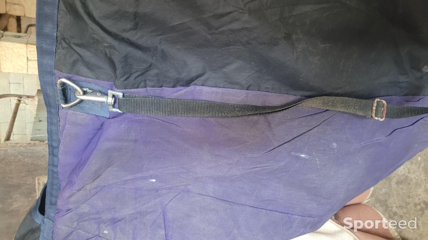 Ancienne couverture Imperméable. Taille. 150. Grammage 150gr. Avec. Les attaches croisées et de cuisses. Un accroc réparé visible sur la photo.