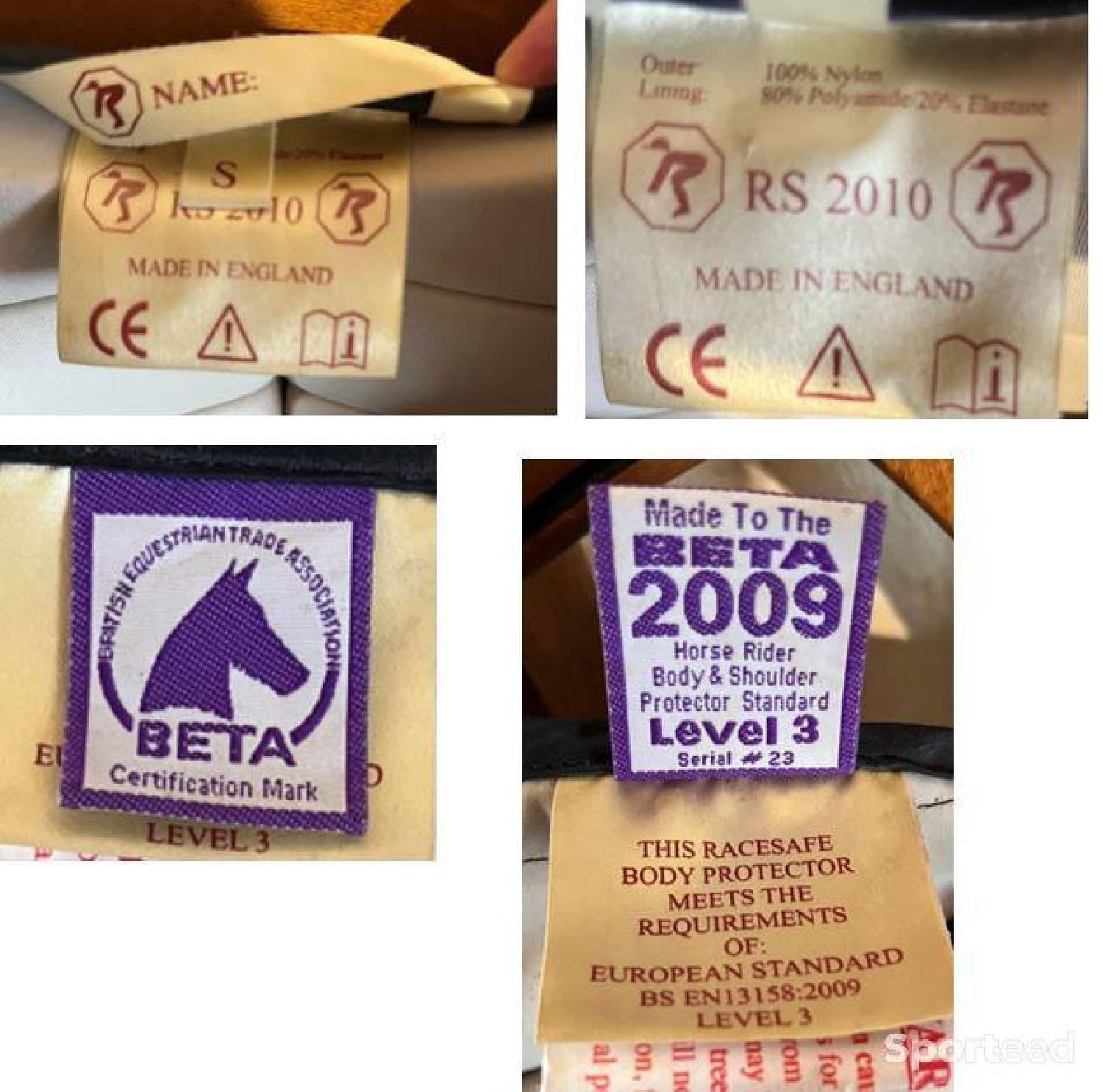 Gilet de protection cross noir de la marque Race Safe taille S (démentions sur photo)