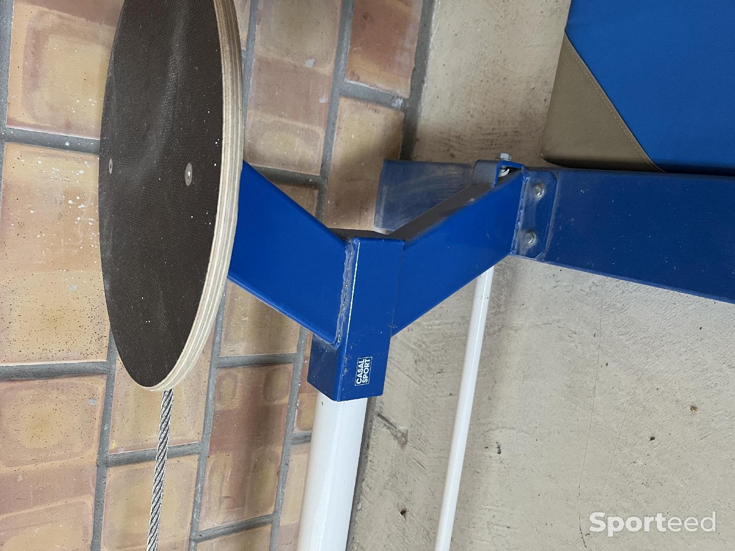 • Hauteur du câble de marche : 50 cm pour une longueur de 3.60 m. Structure en tube acier munie de roulettes pour faciliter le déplacement. Poste départ/arrivée de chaque côté recouvert d'une surface antidérapante pour plus de sécurité (diamètre 38 cm).