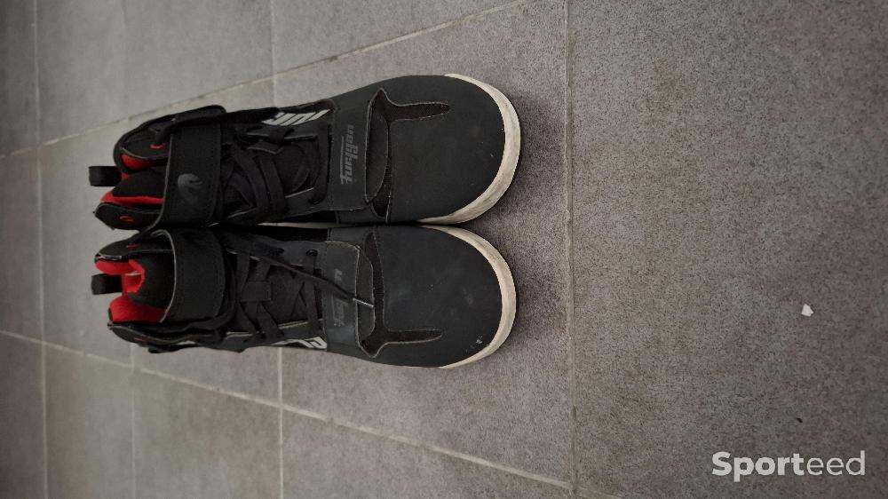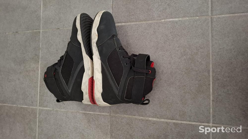 Je vends des baskets moto en coloris noir en tres bon état. Toutes les zones à risque sont protégées, comme les talons, les orteils ou les malléoles, qui possèdent des renforts. Pour une bonne visibilité la nuit, un insert réfléchissant a été ajouté sur le côté extérieur.