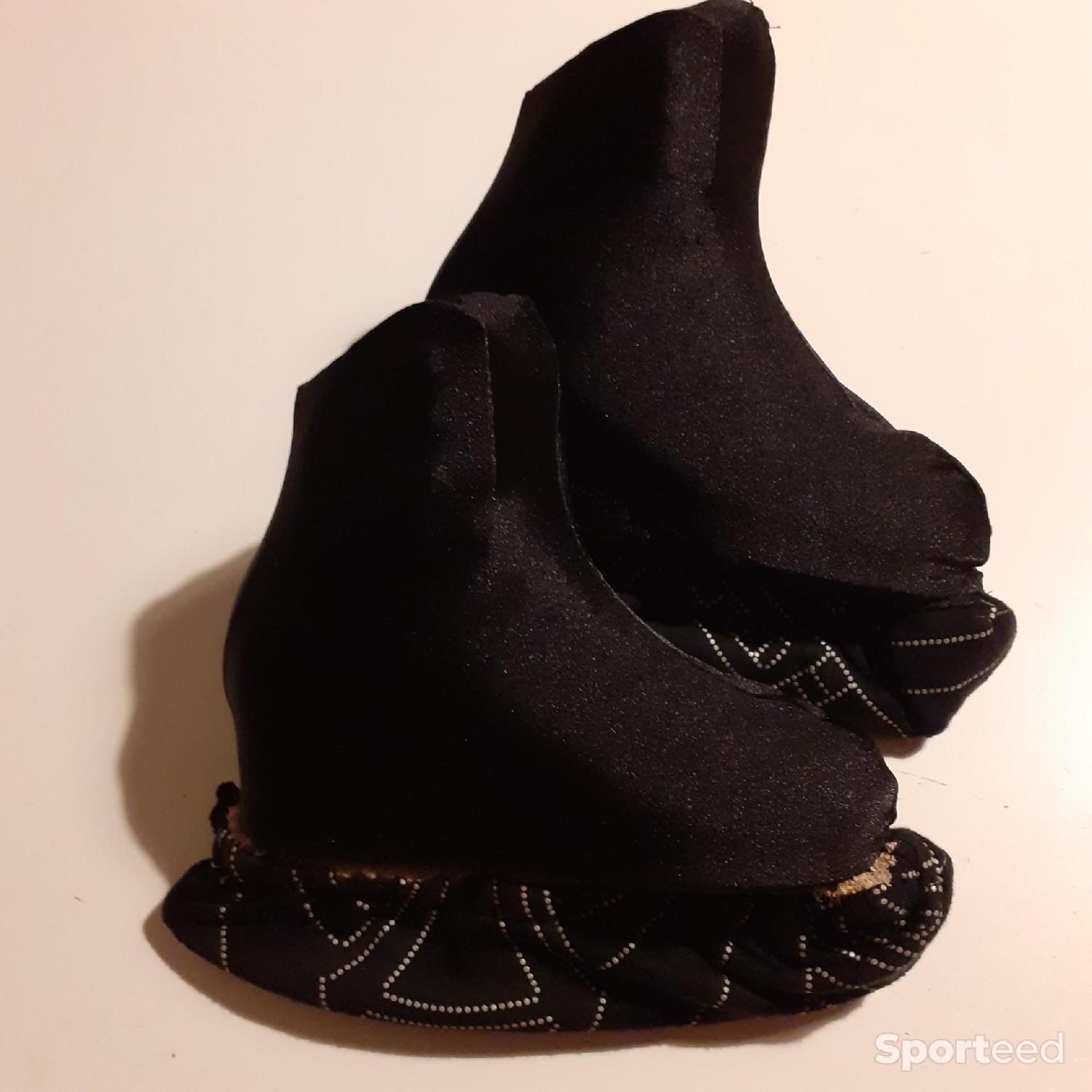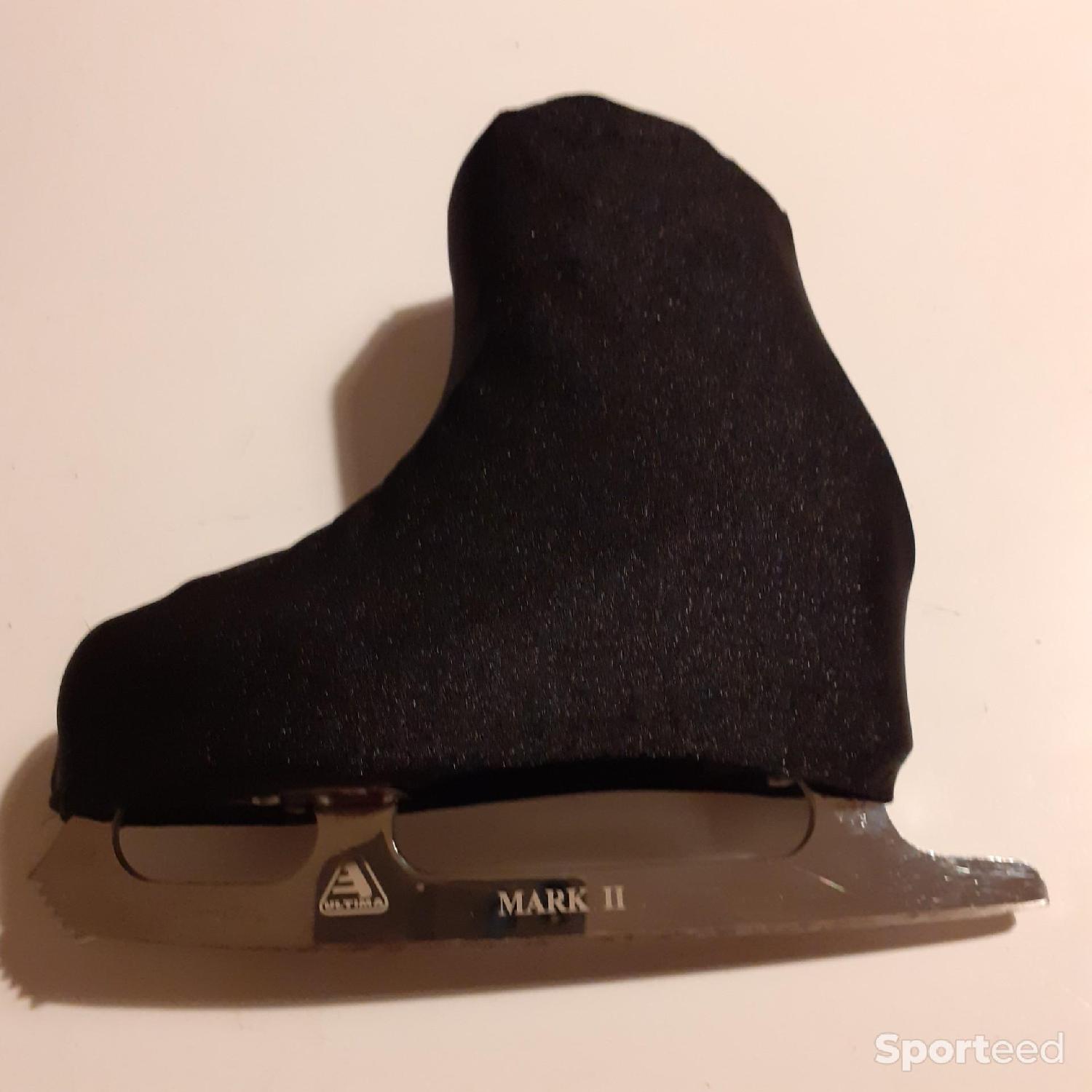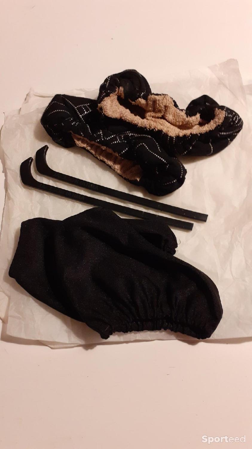 Protège-lames intérieur éponge, extérieur tissus noir et argenté, ils permettent d'absorber l'humidité présente sur les lames et de protéger le sac lors du transport de vos patins.