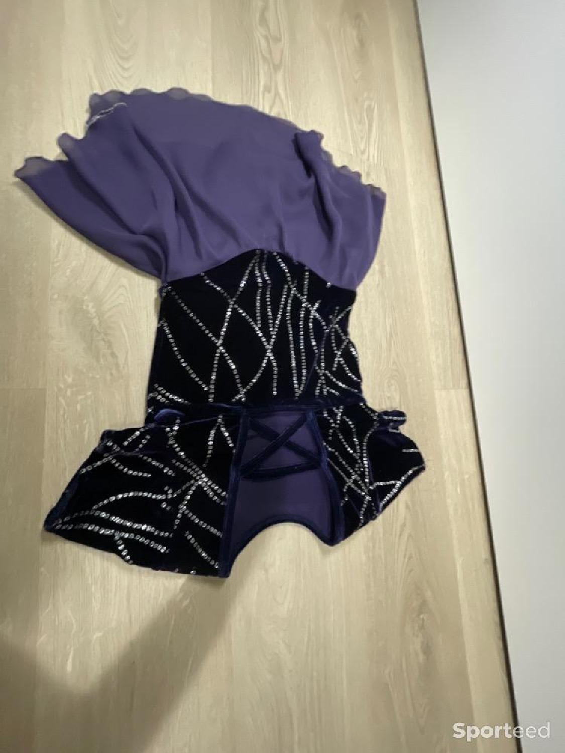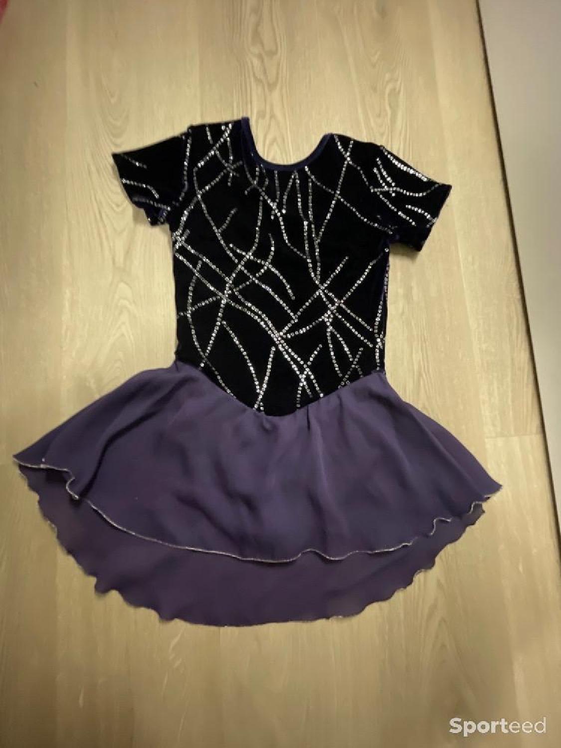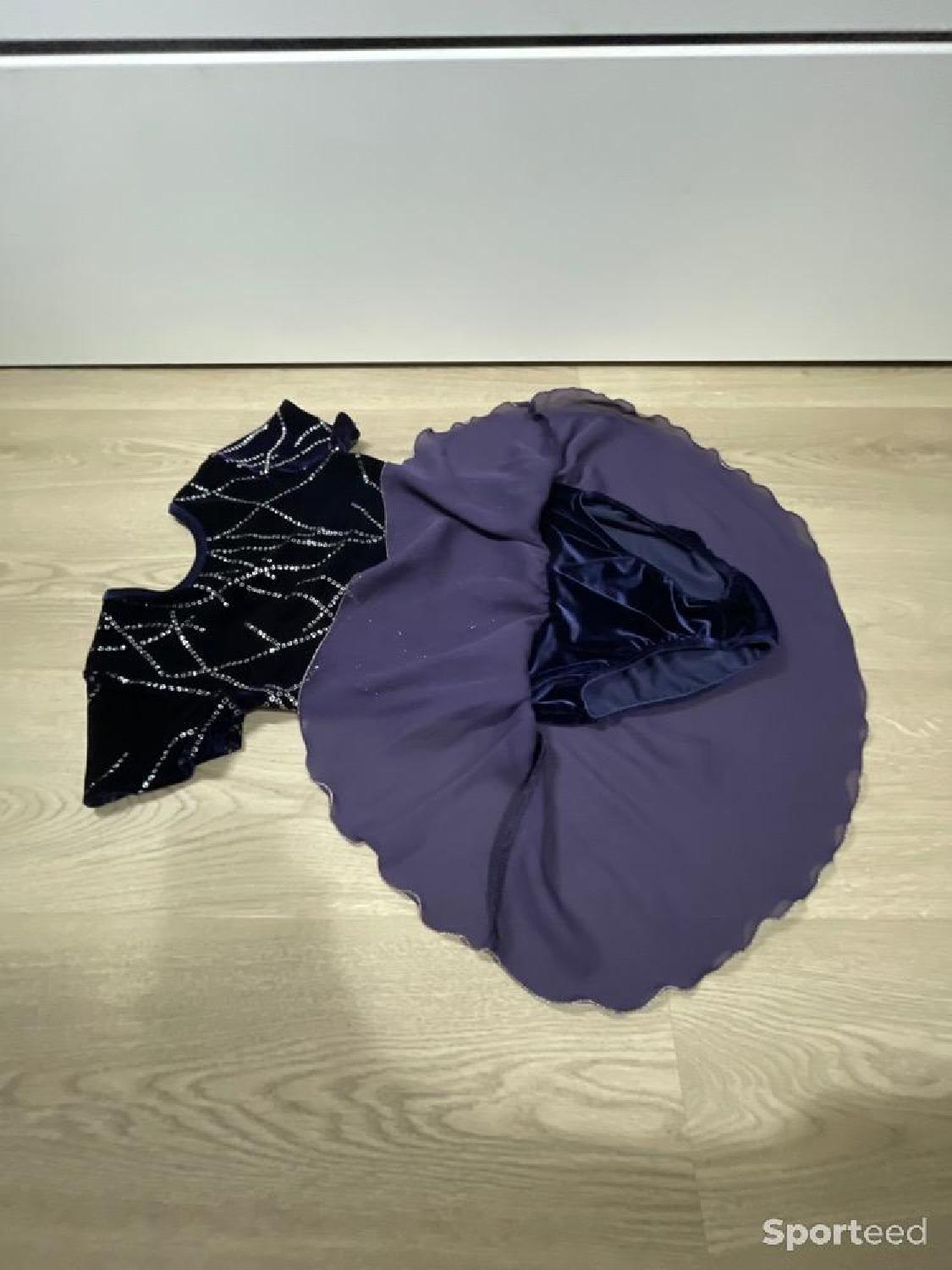 Tunique de patinage artistique taille 12-14 ans, marque Jerry’s, en très bon état. Cette tunique manches courtes est d’un violet foncé élégant, ornée de strass scintillants sur le haut pour une touche de brillance raffinée. La jupette en voile apporte un effet léger et original, parfait pour une performance remarquable sur la glace. Portée mais soigneusement entretenue, elle est prête à accompagner une jeune patineuse avec style et confort.