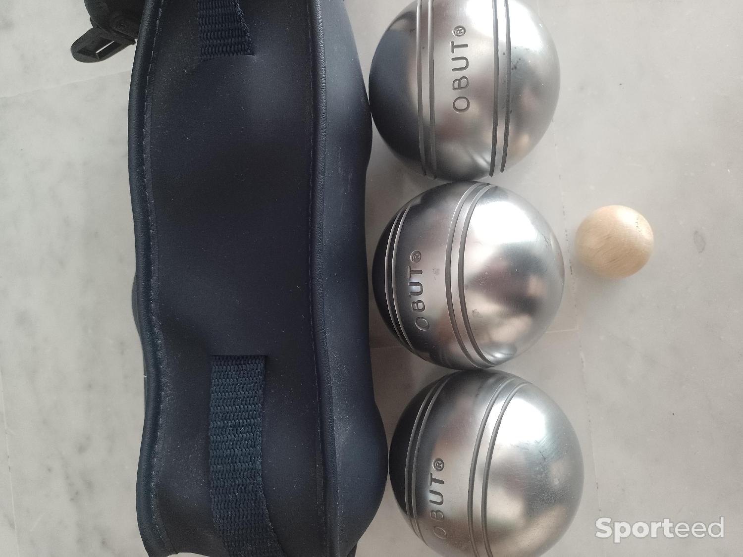 ETAT NEUF : 3 BOULES DE PETANQUE DE MARQUE OBUT LOISIR INOX LISSE + 1 COCHONNET + SACCOCHE