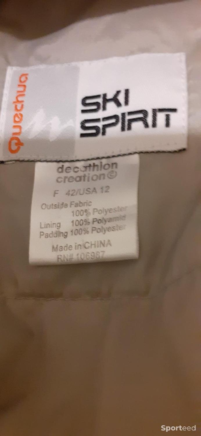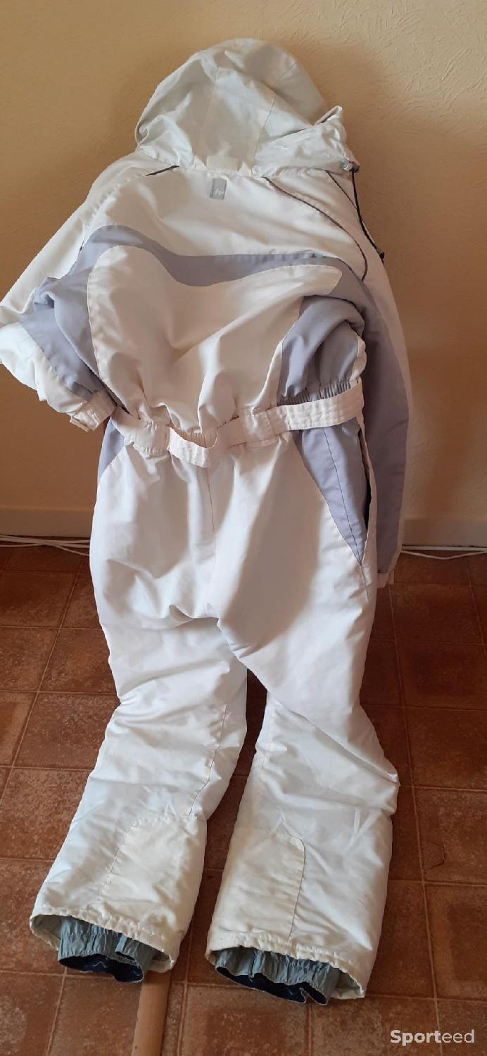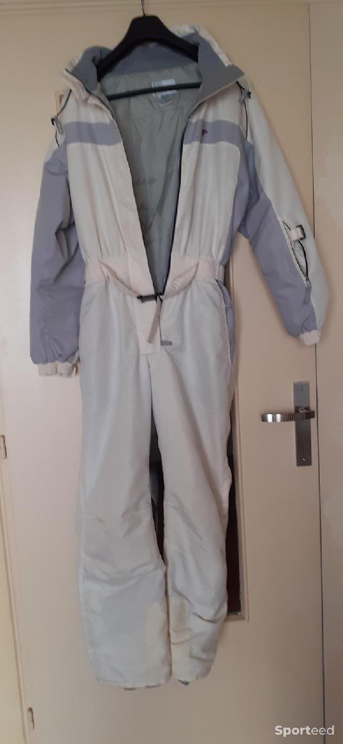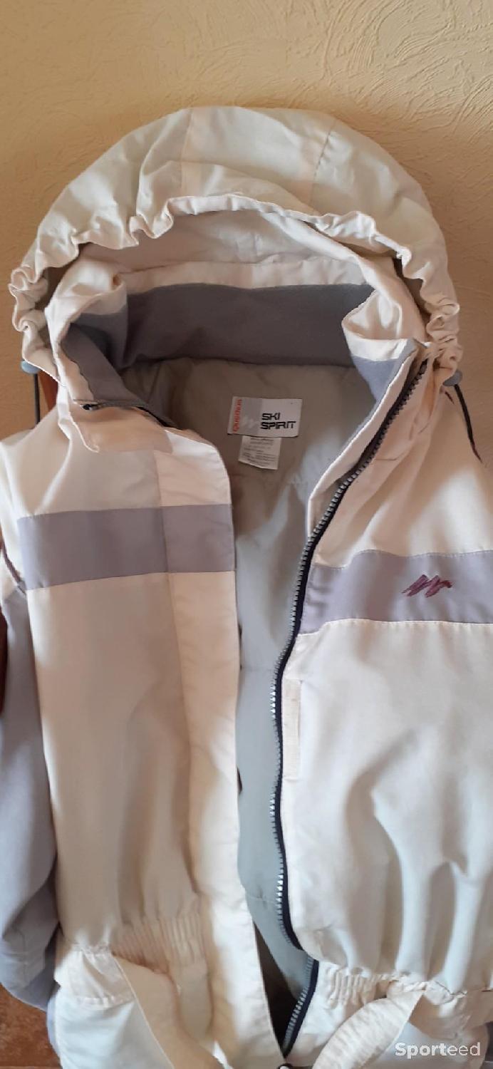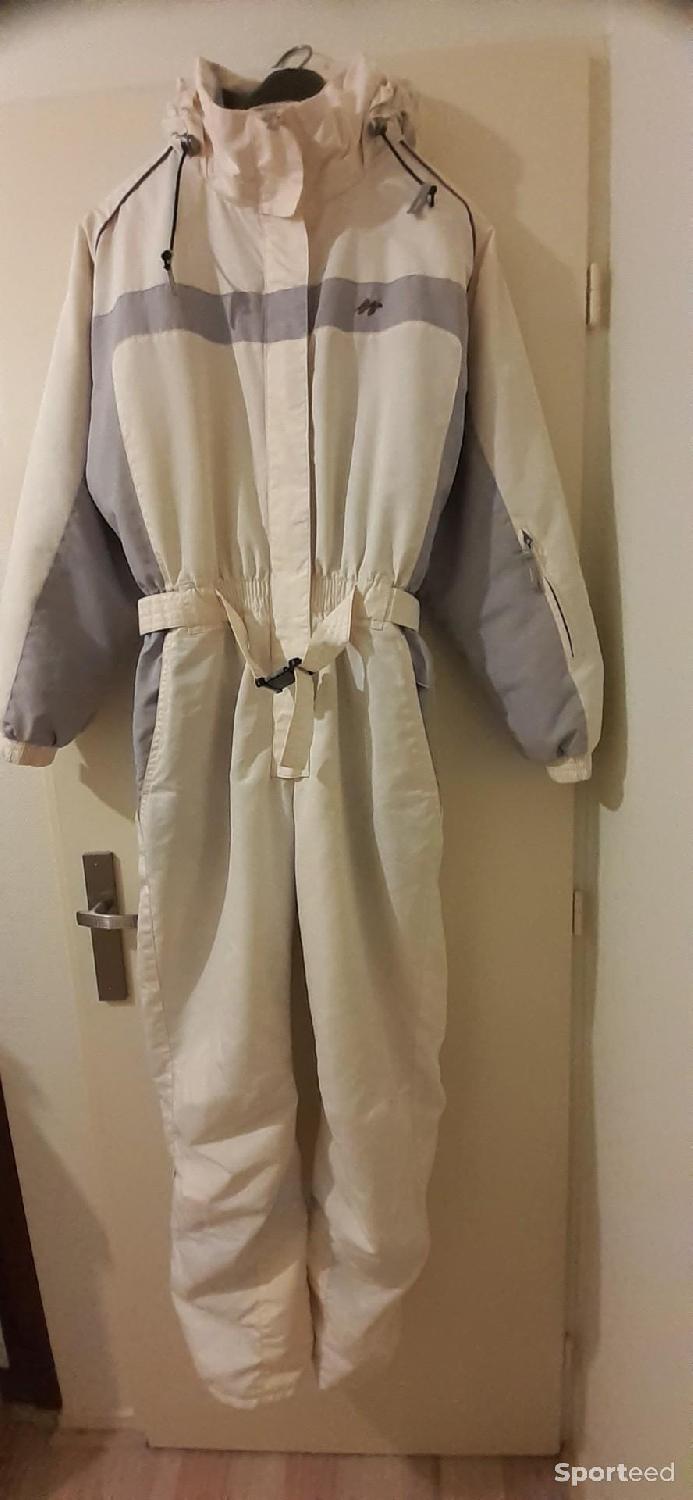 Combinaison de ski Quechua Ski Spirit (décathlon) de taille 42, coloris écru et gris avec capuche ajustable se rentrant dans le col.