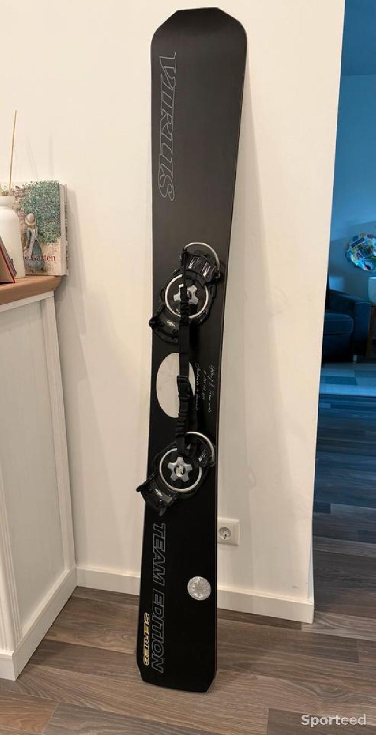Je vends une planche de snowboard Virus Lightning 2 Team Wide. Elle a 8 ans et n'a servi que deux fois. Elle est pratiquement neuve, avec seulement de très légères traces d'usure. La facture d'origine est disponible. Elle est vendue avec des fixations F2 en titane.