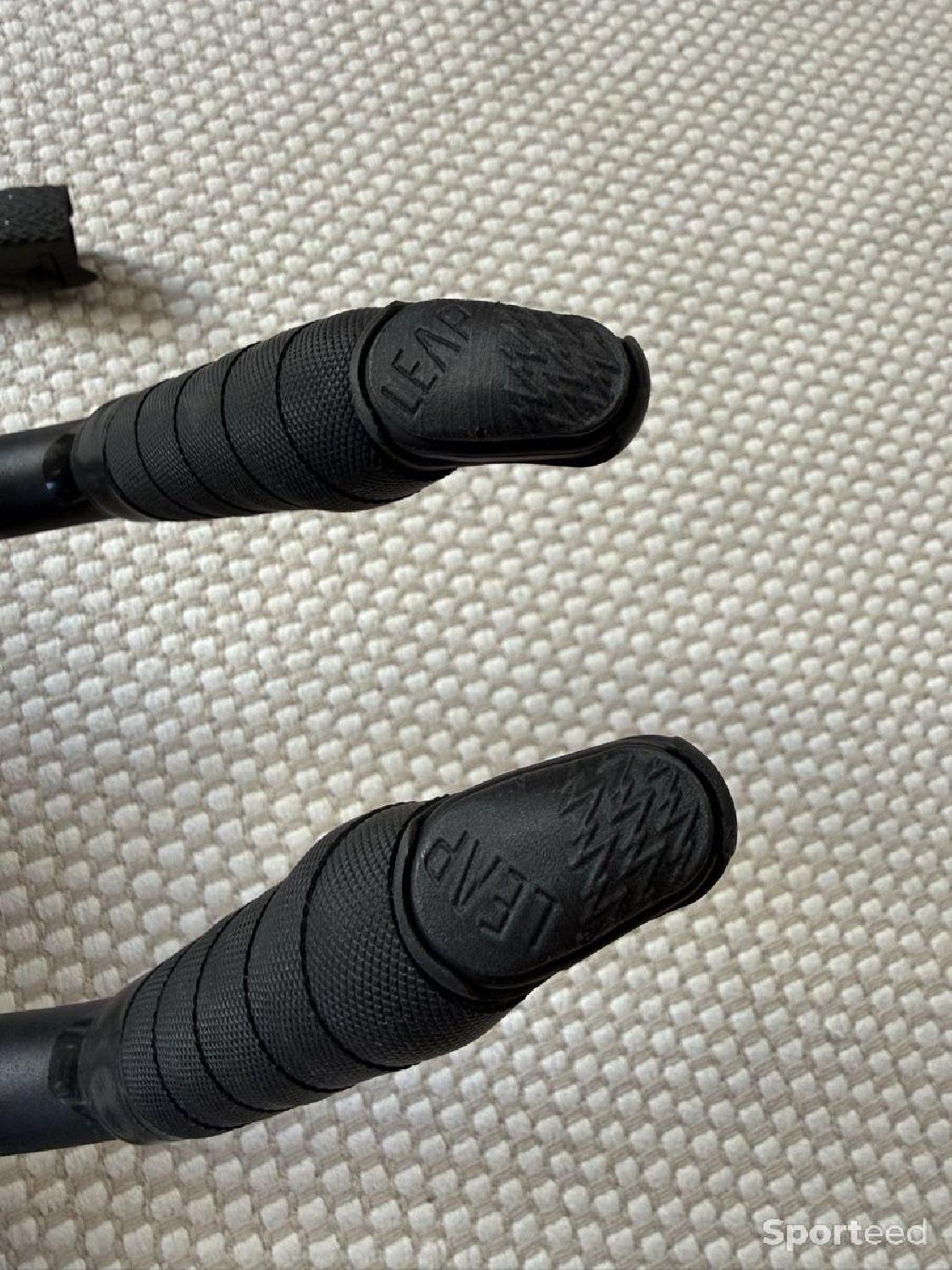 Le guidon est d'occasion et présente quelques traces d'usure. Fabriqué en aluminium, il est équipé de quatre supports SRAM AXS montés sur des fixations Leap Components. Il est parfaitement compatible avec les freins aérodynamiques SRAM S-900. Idéal pour un vélo de triathlon ou un vélo de route déjà équipé d'une transmission SRAM AXS (c'était le cas du mien, par exemple). Des entretoises supplémentaires sont également fournies pour des réglages plus précis. La partie supérieure du guidon est réglable en profondeur.