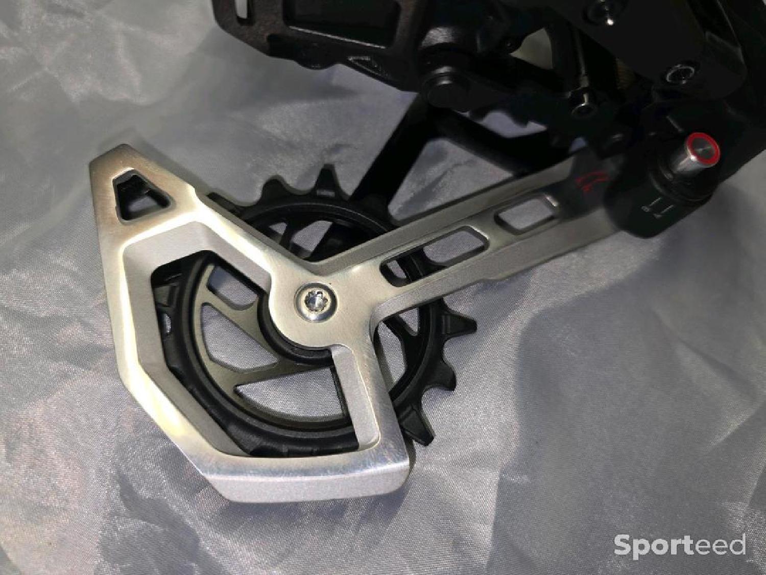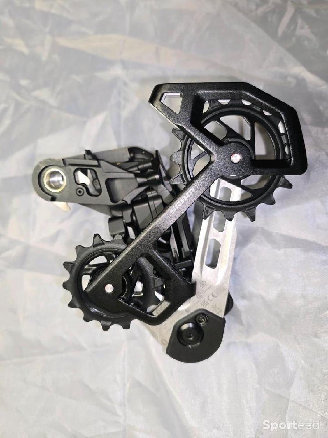 Je propose un dérailleur arrière SRAM XX Eagle Transmission AXS T-Type 12 vitesses neuf, jamais utilisé.
