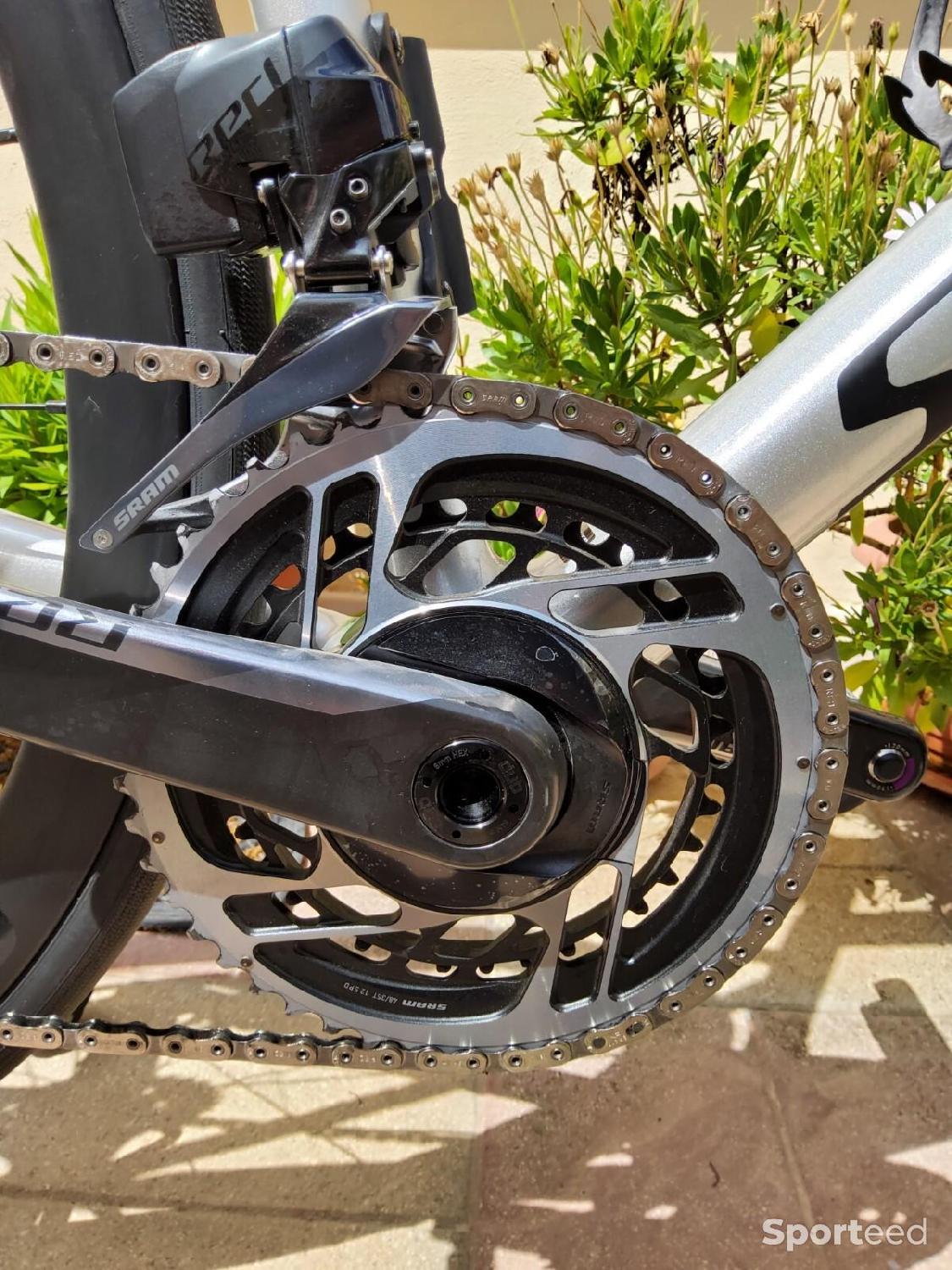 Taille L (56 cm), cadre en fibre de carbone, groupe FACT 12R, le nec plus ultra en matière de transmission dérivée de l'aérospatiale.